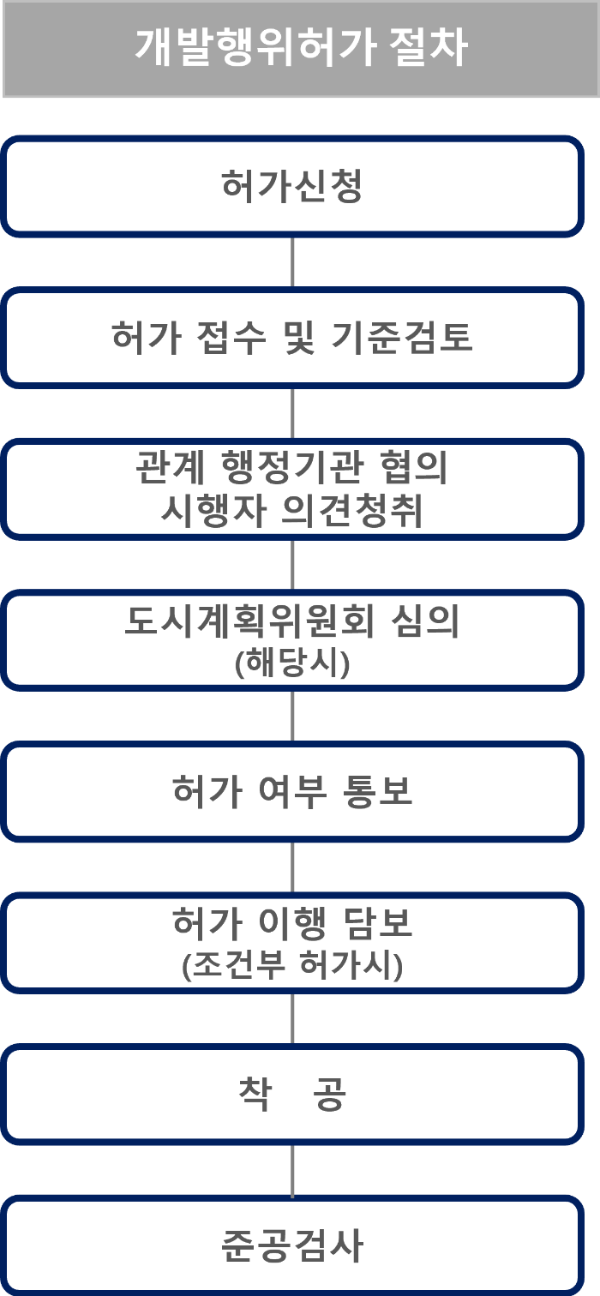 모든 토지는 이웃 토지와 서로 연접되어 있어 어느 한 토지의 개발행위가 인접 토지의 이용에 막대한 영향을 미칠 수 있다. 따라서 개발행위허가의 절차를 마련하여 해당 개발행위가 인접 토지이용과 조화로움, 상위 계획의 내용에 부합하는지 등을 사전에 검토함으로써 토지의 효율적 이용과 도시관리계획의 원활한 집행을 도모함